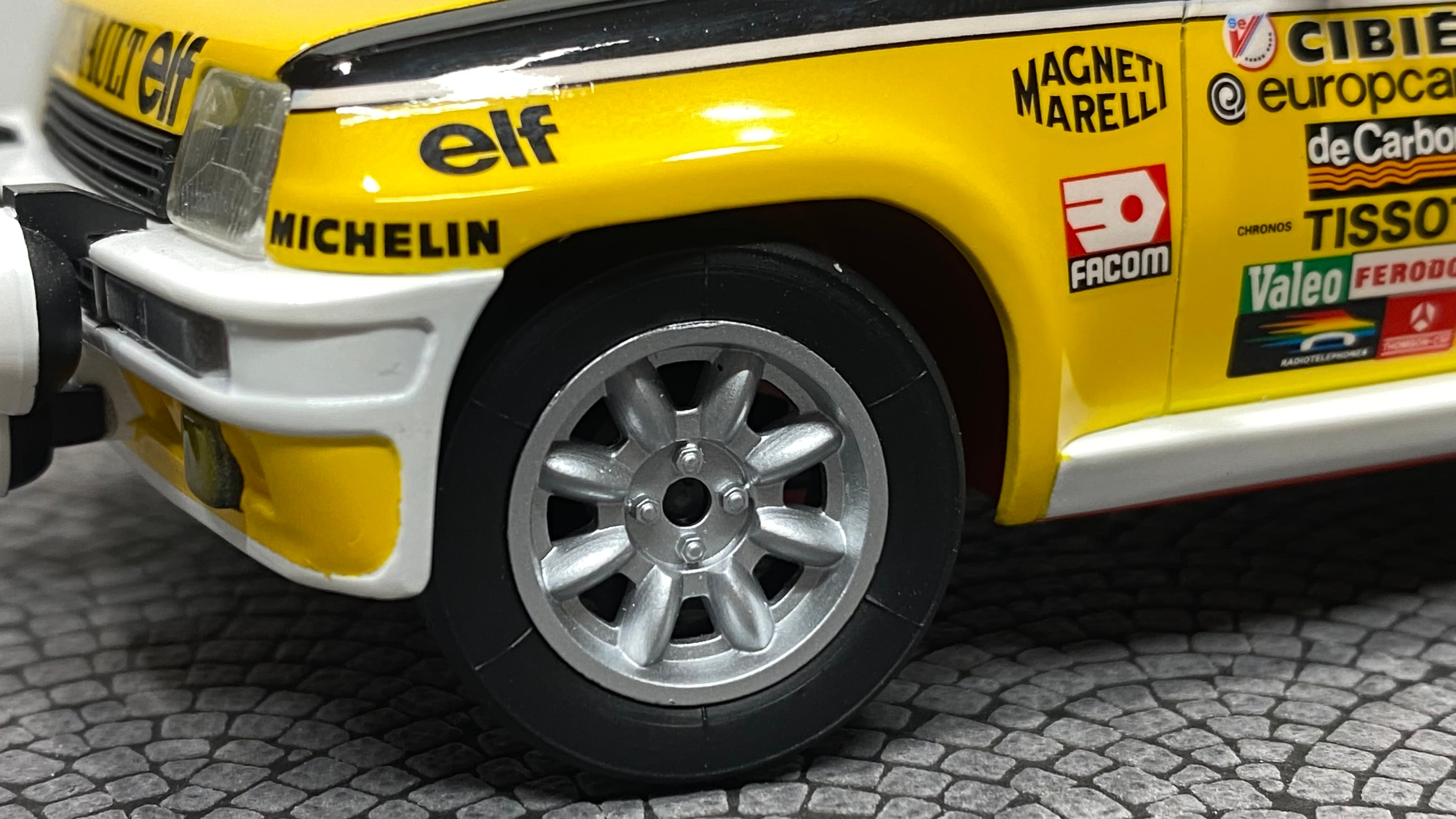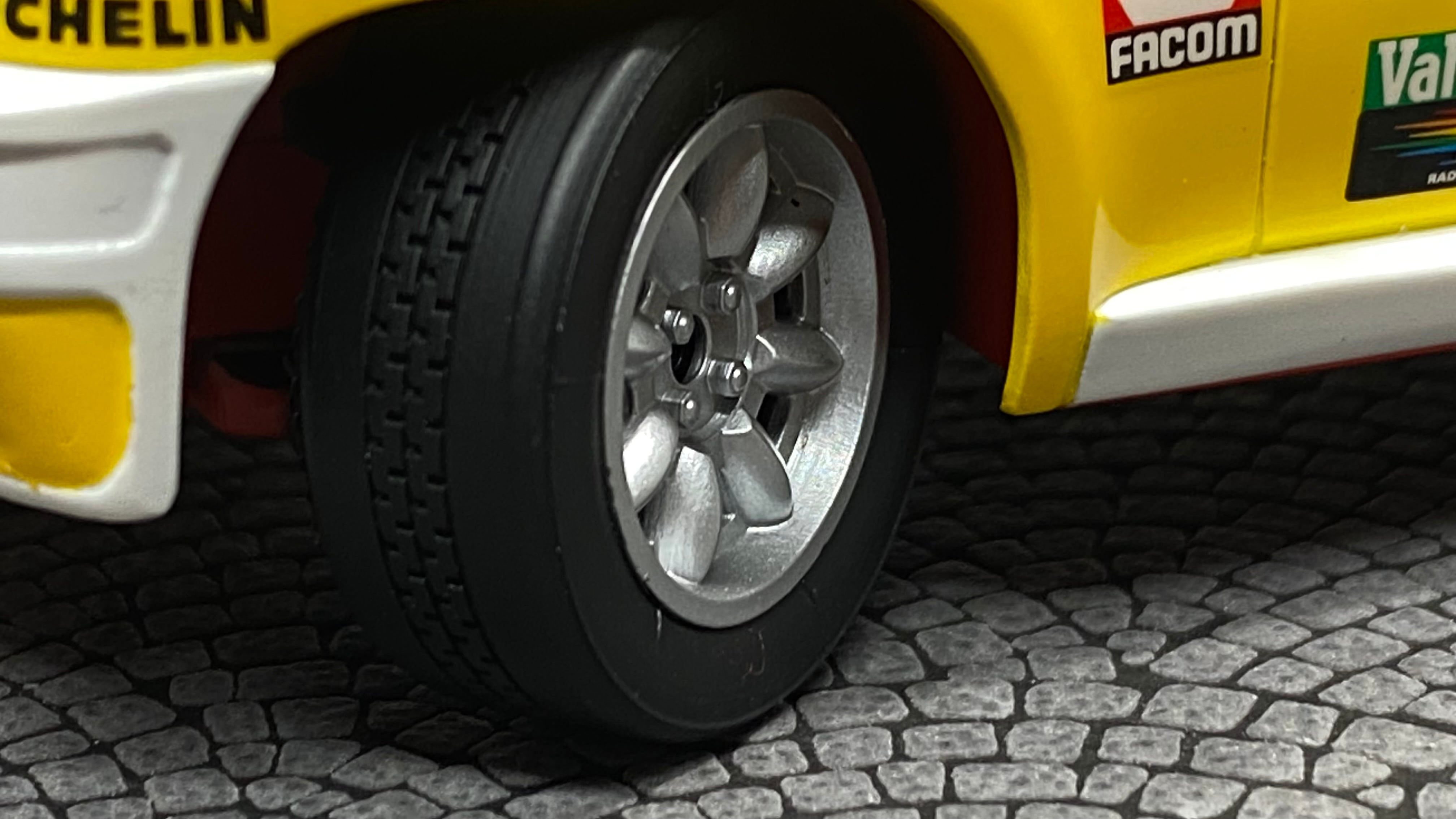 そこで富士スピードウェイにあるモータスポーツミュージアムに展示されているルノー5ターボラリー、1981モンテカルロ優勝車の履いてるタイヤとホイールを参考に、より解像度の高いパーツを用意しました。