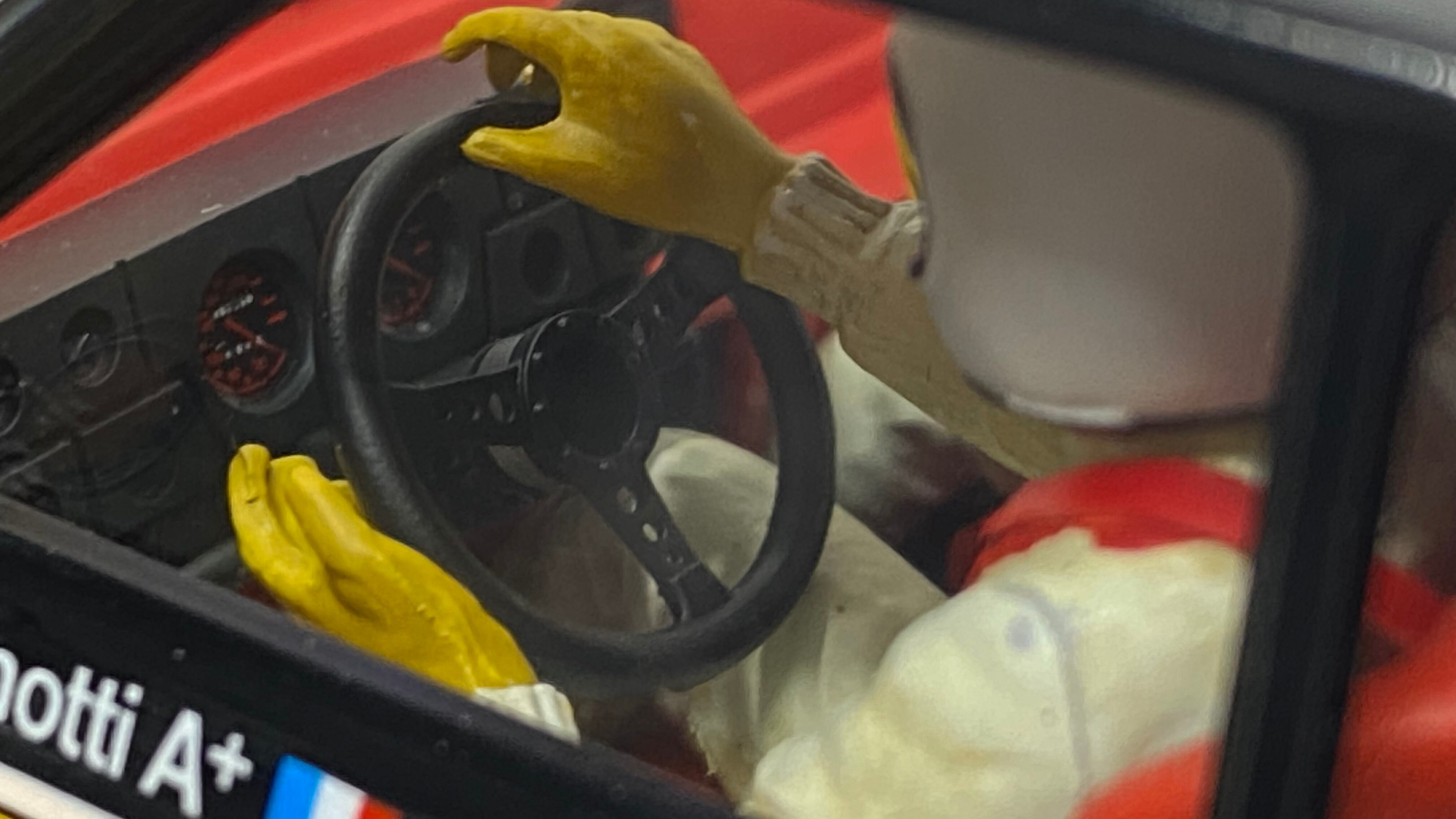 またキットでは運転席側にしかないドアミラーも実車に装着されているビタローニを左右、ステアリングもラリー仕様に装着されているものを、さらにはヘッドライトハウジングもセットにしています。