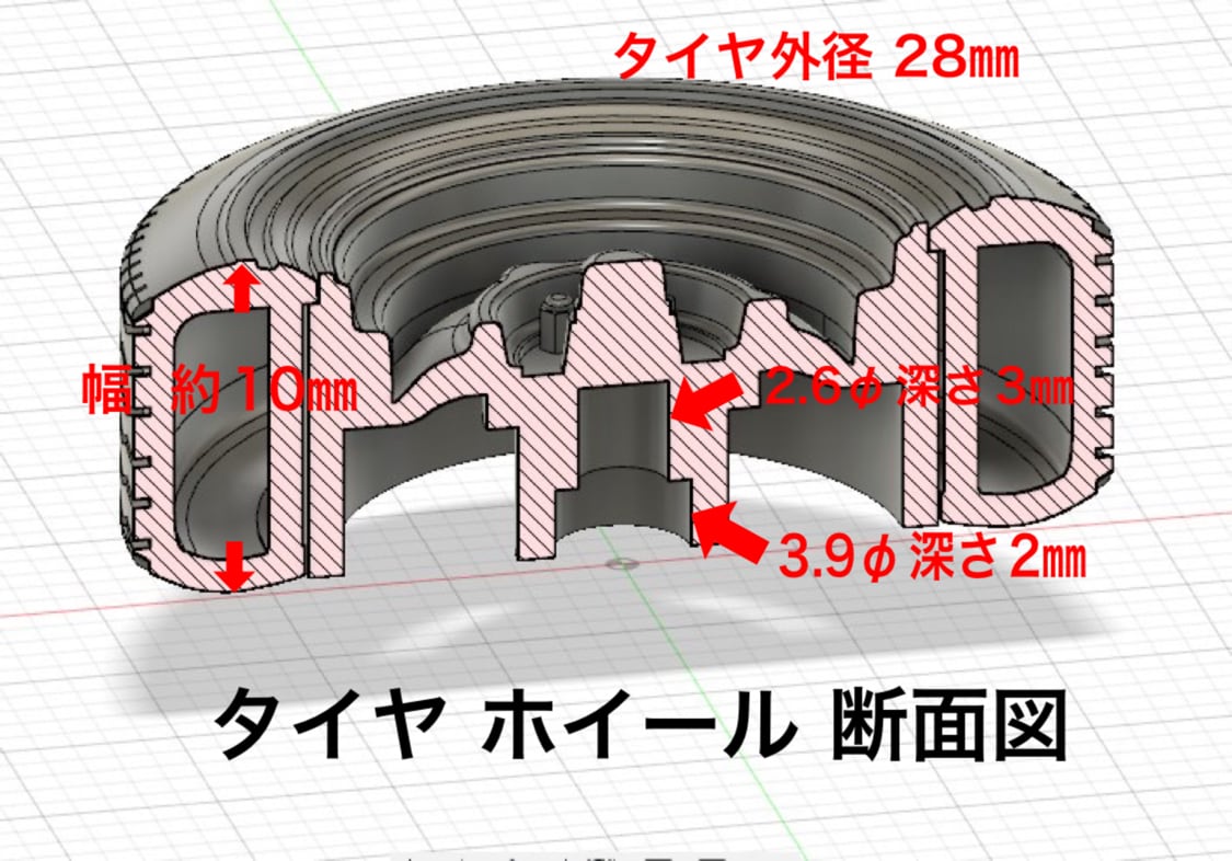 ⚫︎タイヤはトレッドパターンはもちろん、特徴的なレッドラインを塗りやすくする為の溝を設けてます。