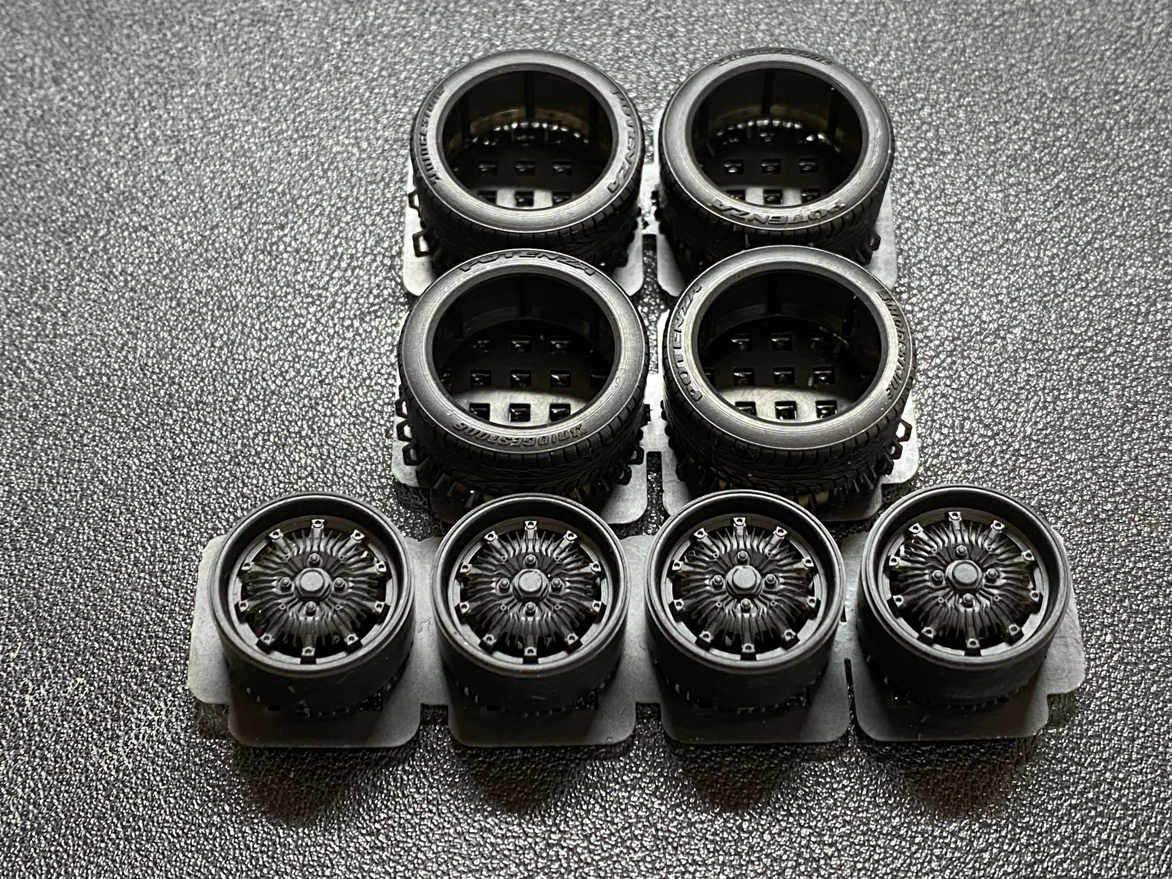 ⚫︎キット付属のホイールもカッコいいのですが、お手軽にカスタム感が味わえるこのタイヤホイールを履かせて足元の解像度UPを実感して下さい!