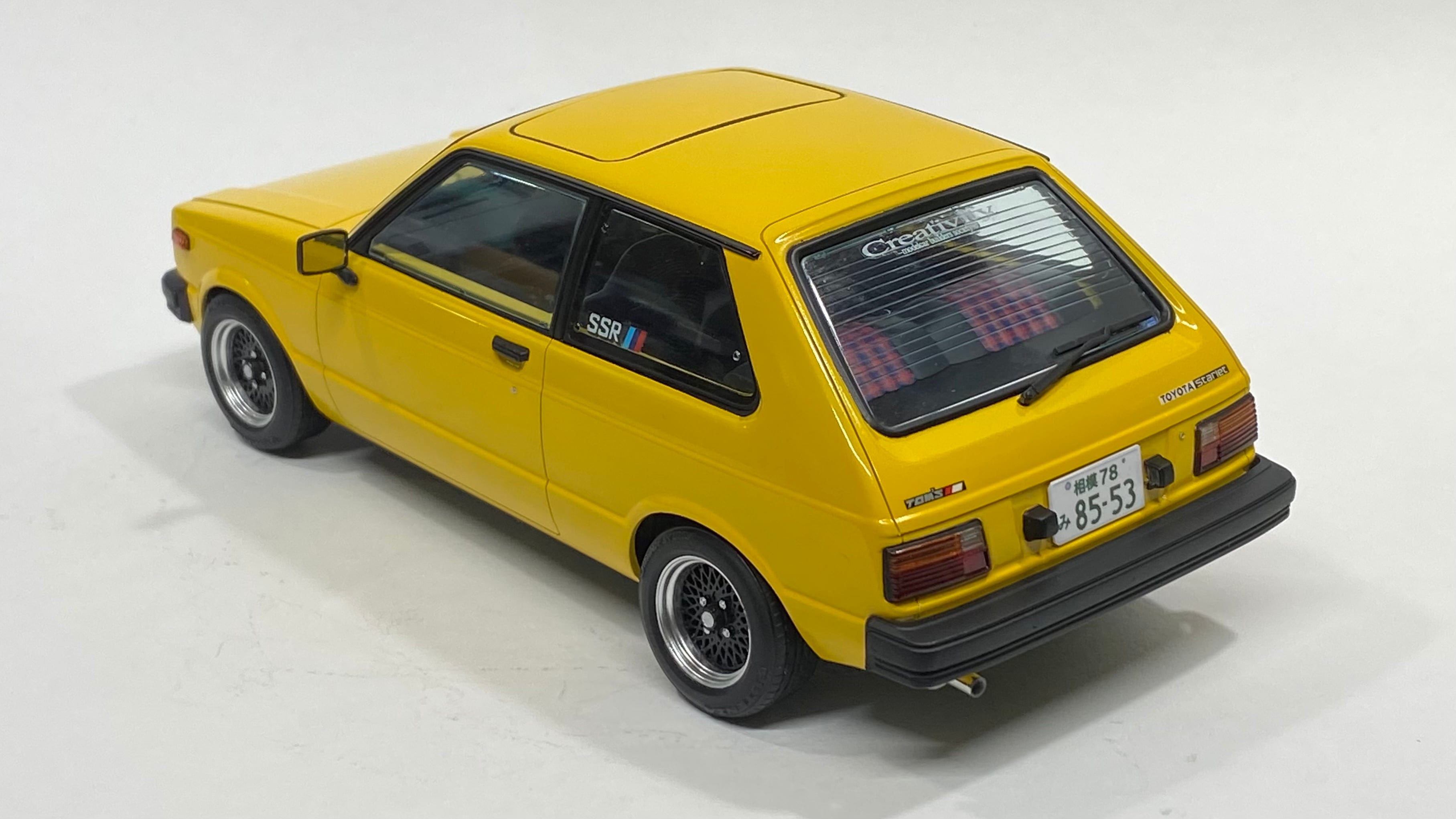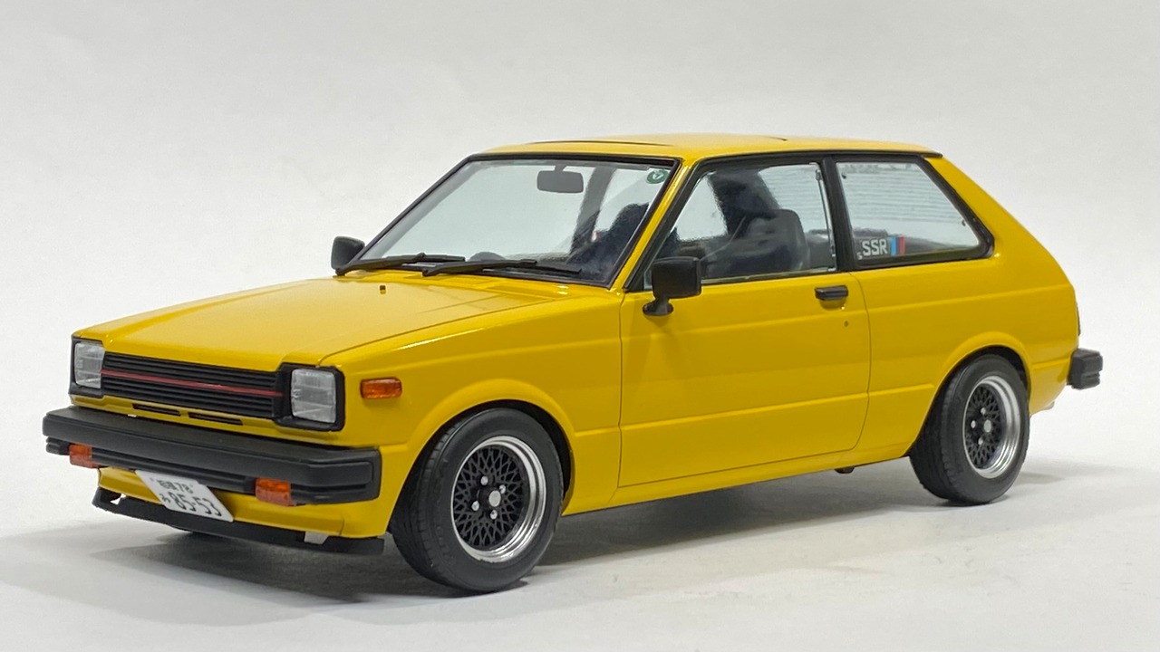 ⚫︎ハセガワさんからリリースされたKP61スターレット様に走りを予感させるメッシュホイールとスポーティなタイヤのセットを製作しました。